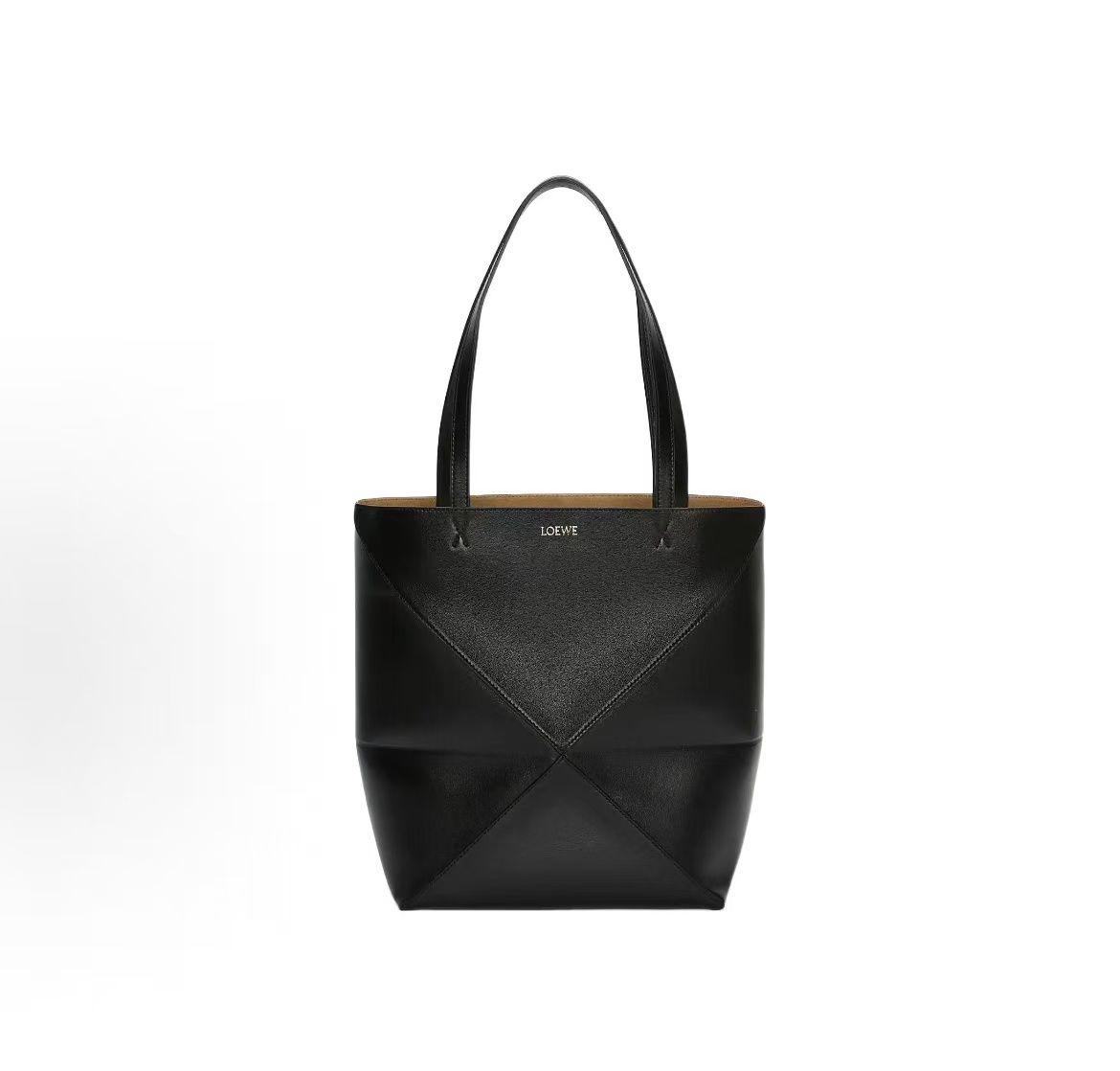 Black Geometric Panel Leather Tote Bag - Large-Capacity Minimalist Handbag for Versatile Daily Commute