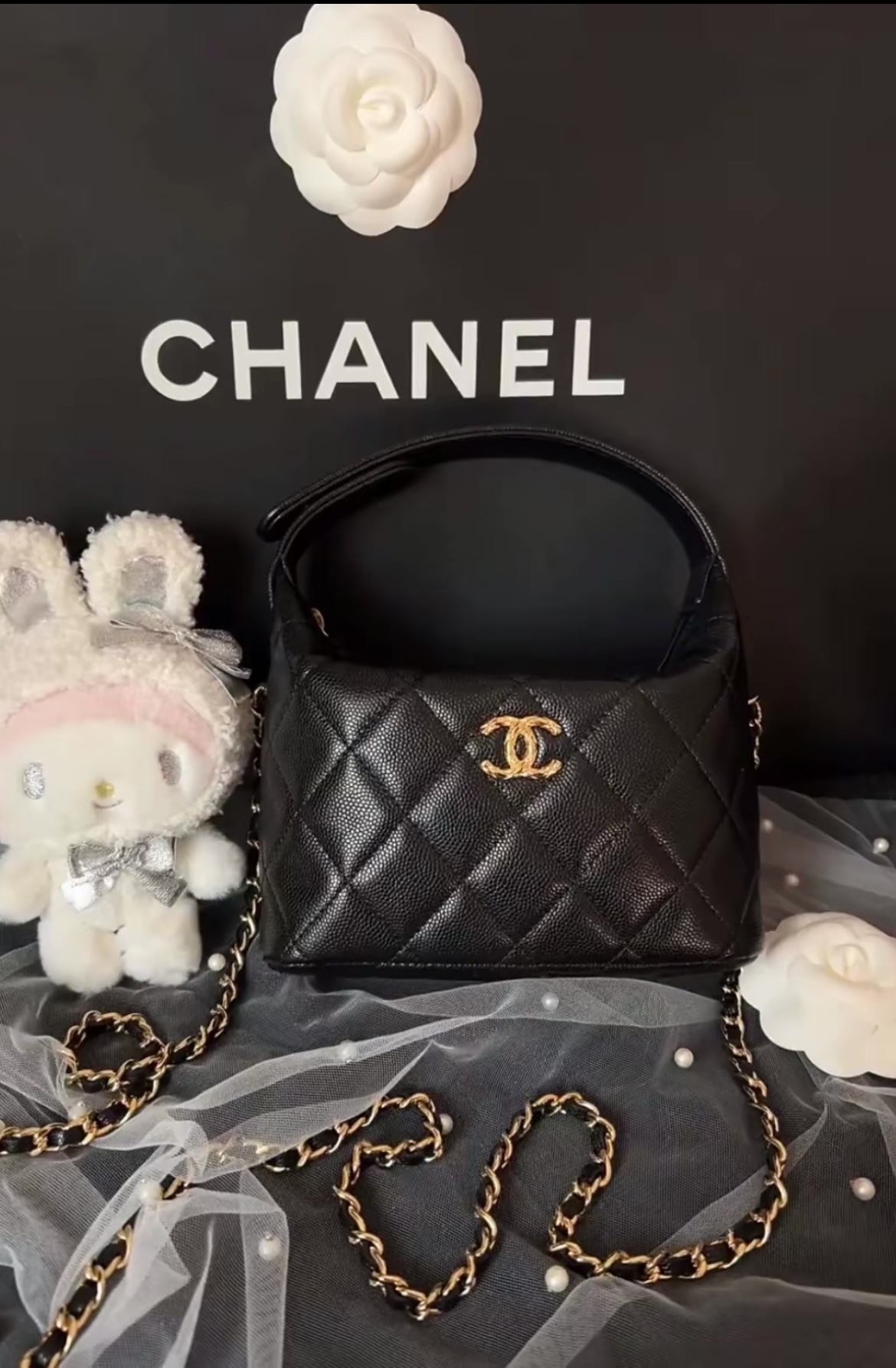 Black Quilted Leather Double-Chain Top-Handle Crossbody Bag (Metallic Embellishment + Minimalist Silhouette)