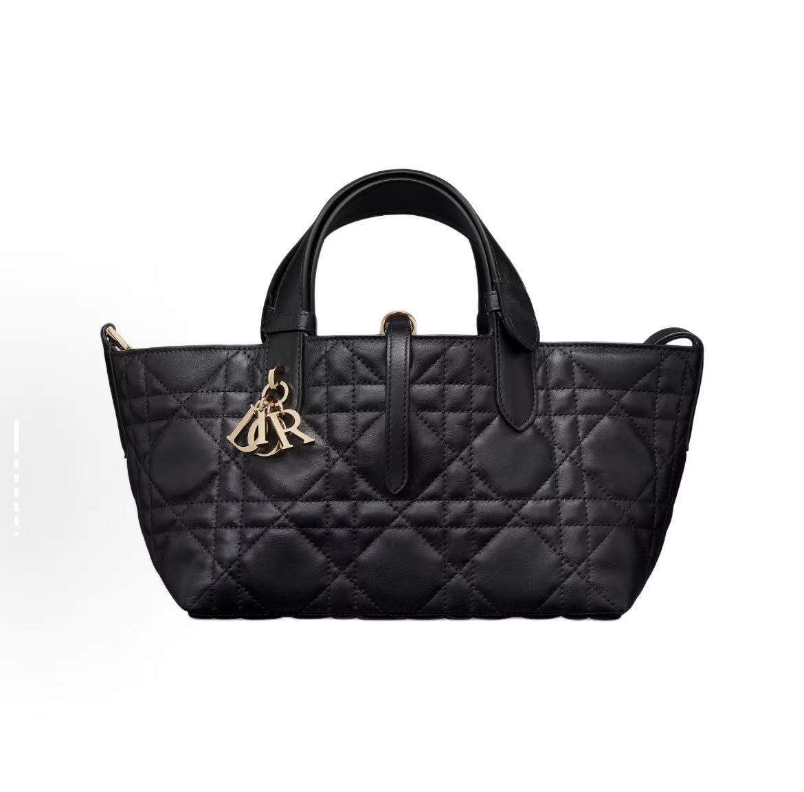 Black Quilted Metal Charm Handbag - Textured Leather Tote Bag