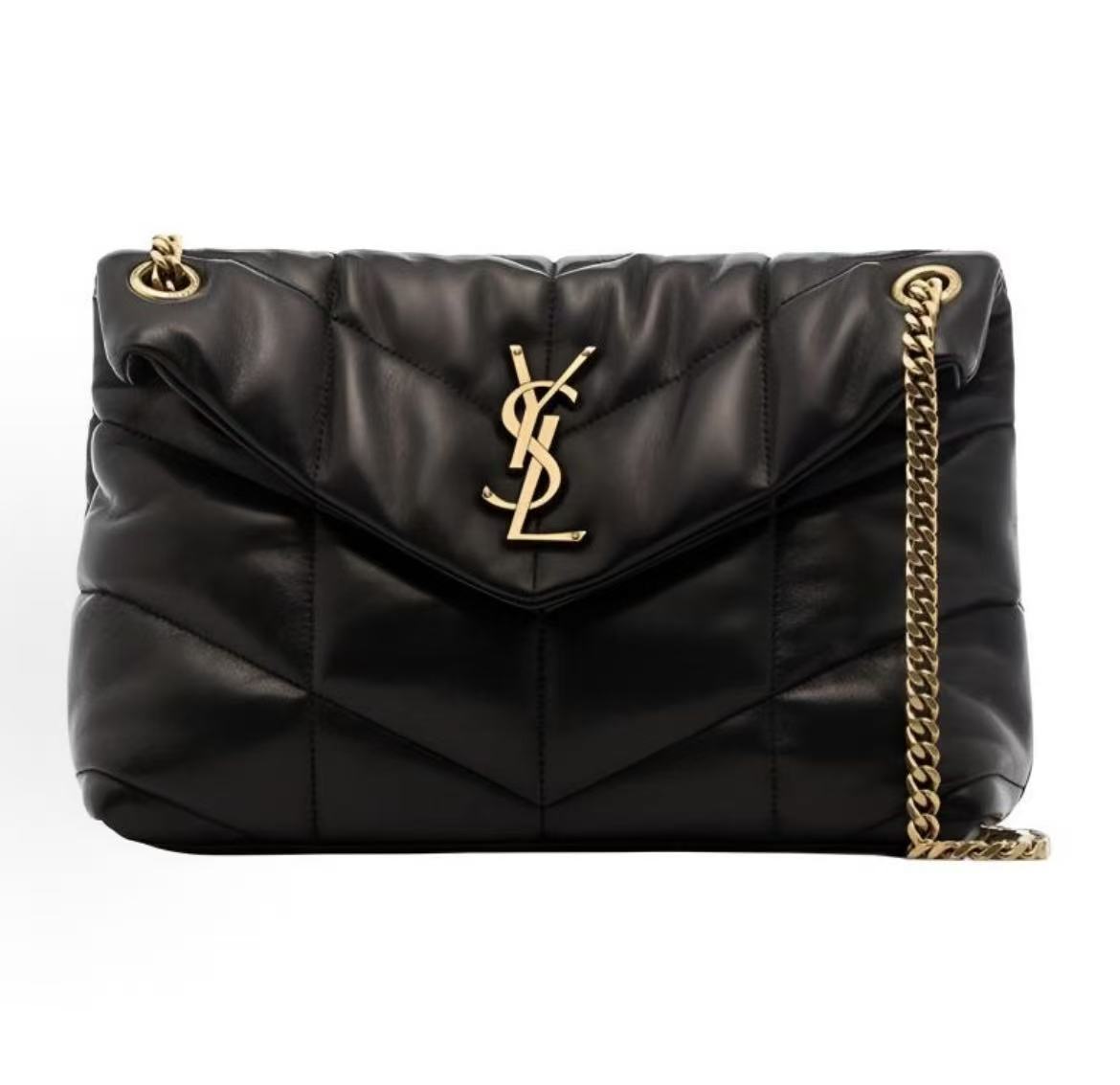Black V-Stitch Quilted Flap Bag with Metal Chain, Crossbody & Shoulder Style