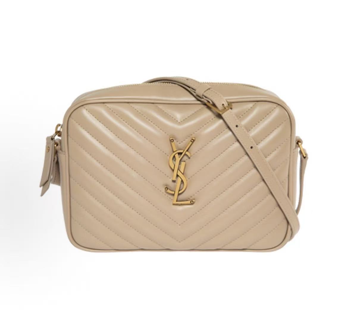 Light Beige V-Stitch Quilted Camera Bag with Metal Accent, Shoulder & Crossbody Style
